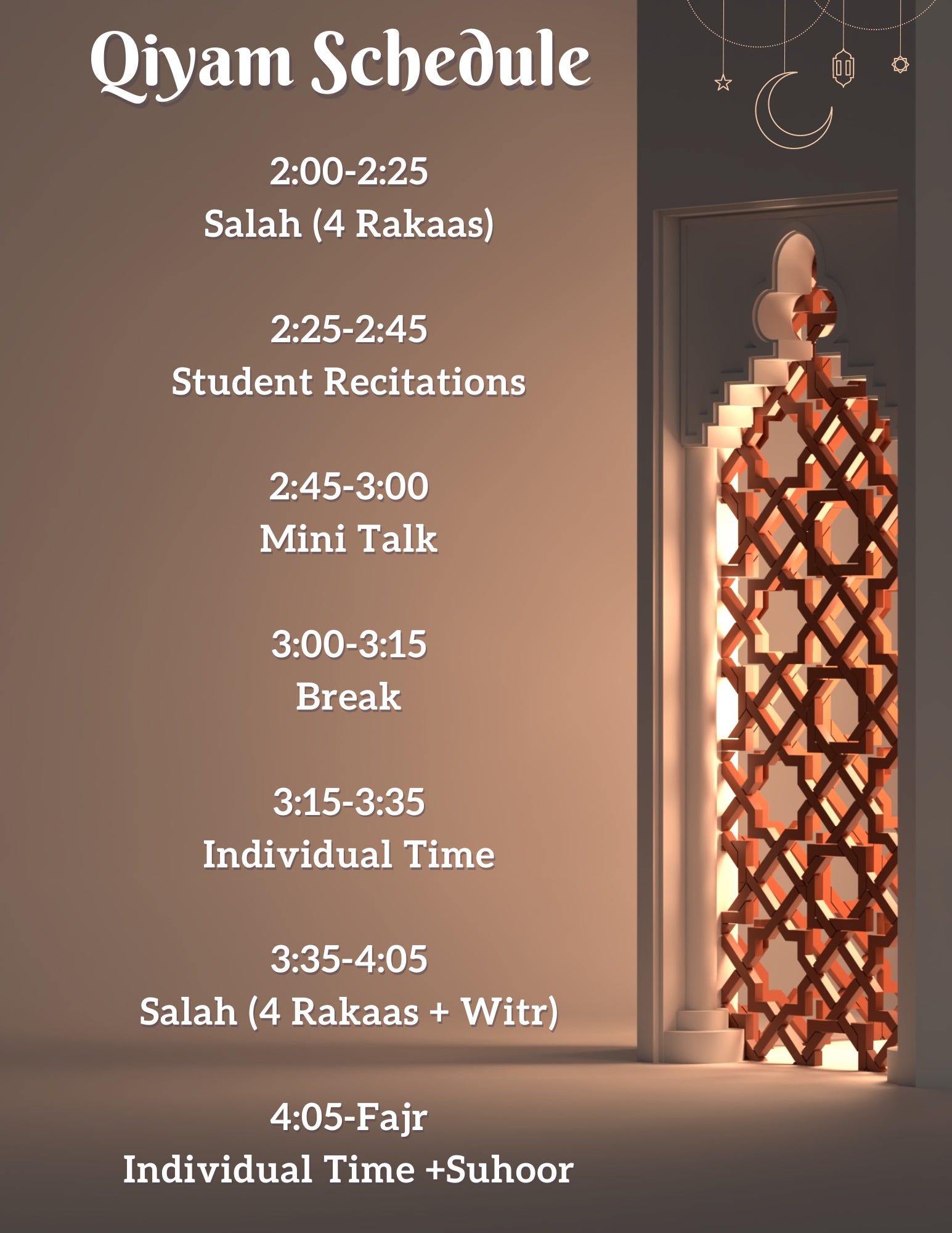 Qiyam Schedule:
